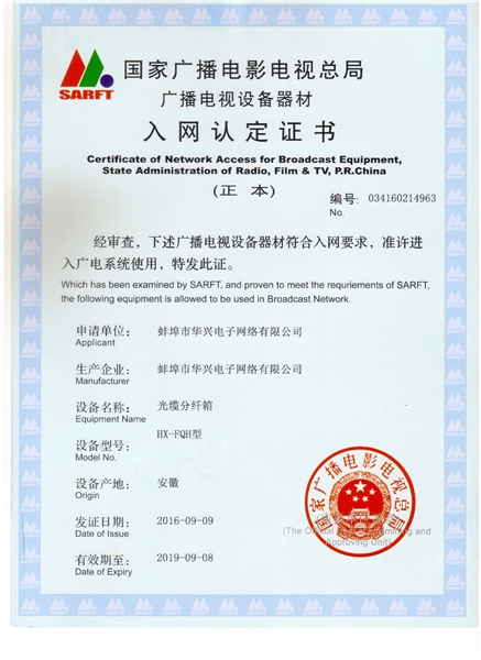 光纜分纖箱入網證